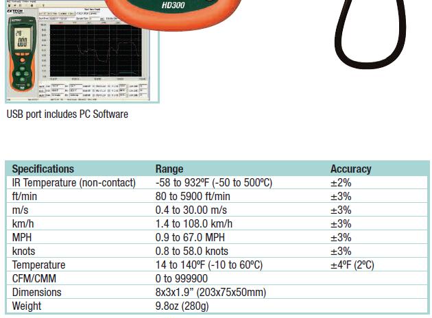 Extech HD300葉輪風(fēng)速儀技術(shù)參數(shù)