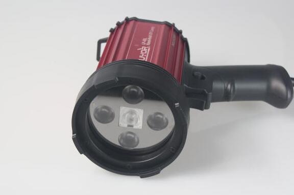 4顆紫外線led,聚焦型,透明濾色片,內(nèi)置電池組供電。38cm處紫外線中心強度為6000uw/cm2 |