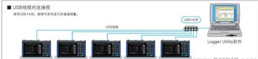 USB線纜的連接圖:使用USB HUB,能夠對多處進行多通道測量