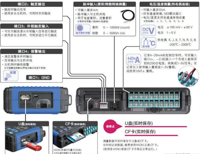 存儲容量 內存3.5MW,CF卡/U盤(僅保證HIOKI原裝CF卡的操作)