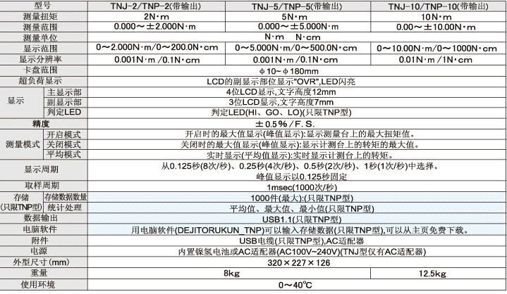 TNP-2/TNP-5/TNP-10瓶蓋扭力計/扭矩儀的技術參數: