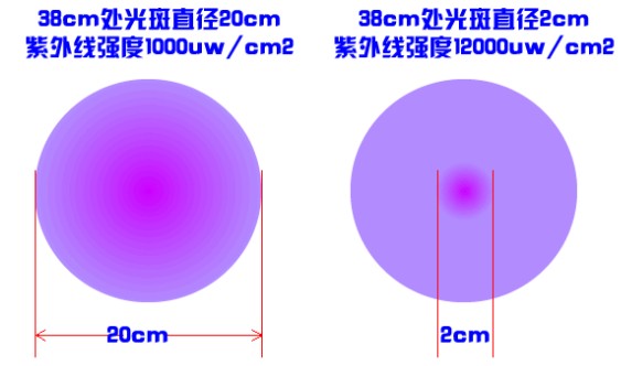 LUYOR-3130紫外線探傷燈采用了美國路陽的可變焦,只需輕輕一轉,光斑隨即發生變化,38cm處小光斑可調整到20mm,紫外線強度高達12000uw/cm2,當38cm處光斑調整到20cm時,紫外線強度能夠達到1000uw/cm2,仍然滿足國家探傷標準。