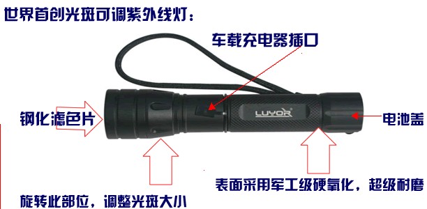 為了滿足市場需求,在2012年推出了探傷面積可調整的紫外線探傷燈LUYOR-3130,LUYOR-3130紫外線探傷燈克服了傳統紫外線探傷燈的笨重的模式,質量僅有200多克,長度僅有130mm,能夠方便放入工作服口袋里面。但紫外線強度達到了傳統高強度紫外線探傷燈的2倍以上;