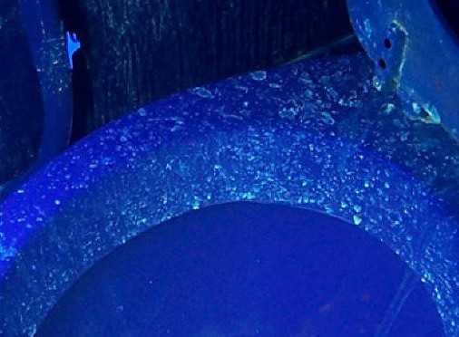 上圖為LUYOR-3130紫外線燈照射沒打掃干凈的坐便器效果圖。